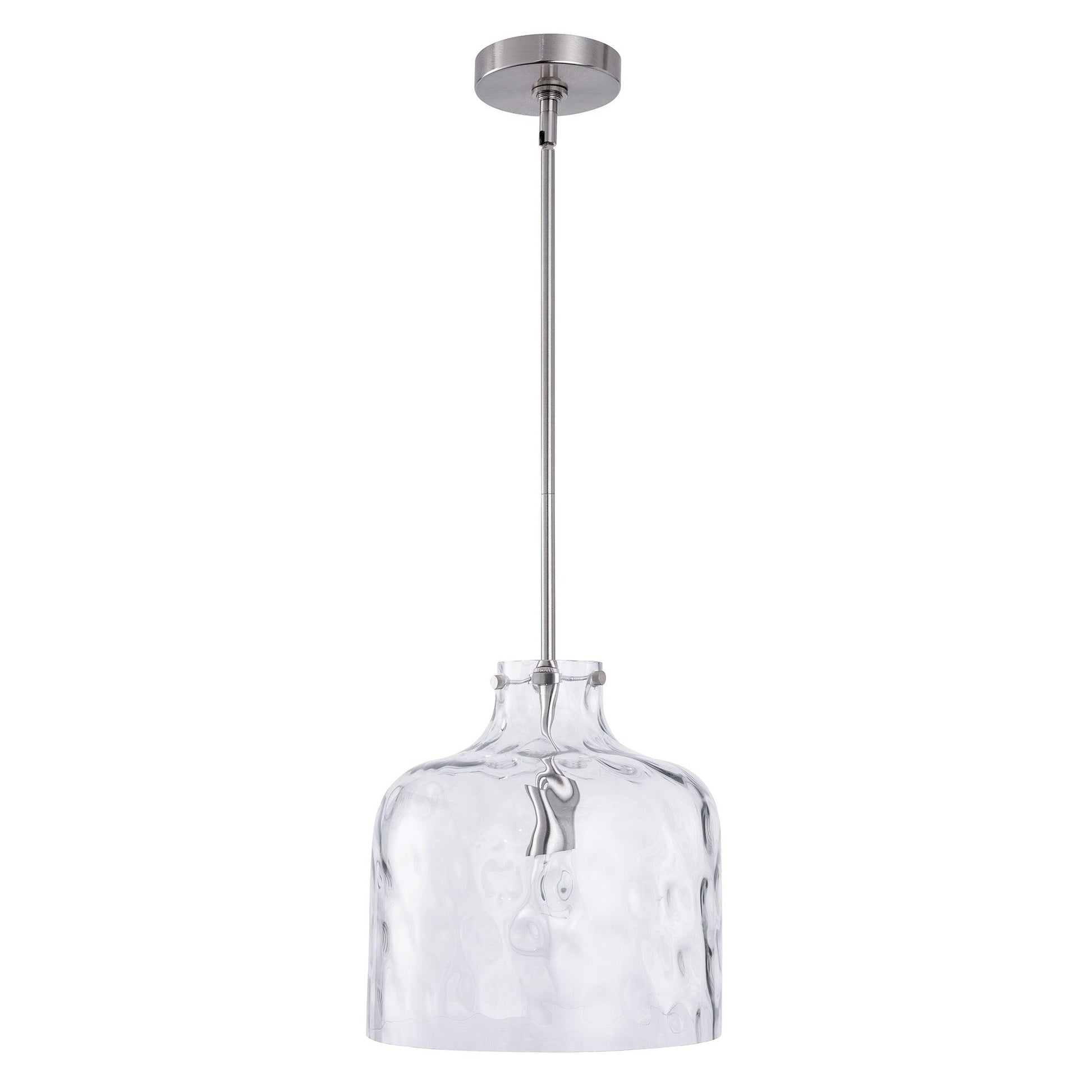 The Kara Farmhouse 1-Light Textured Glass Nickel Pendant Light is the perfect addition to your home lighting collection. Crafted from durable steel, this pendant light is built to last and adds a touch of elegance to any room in your home.
